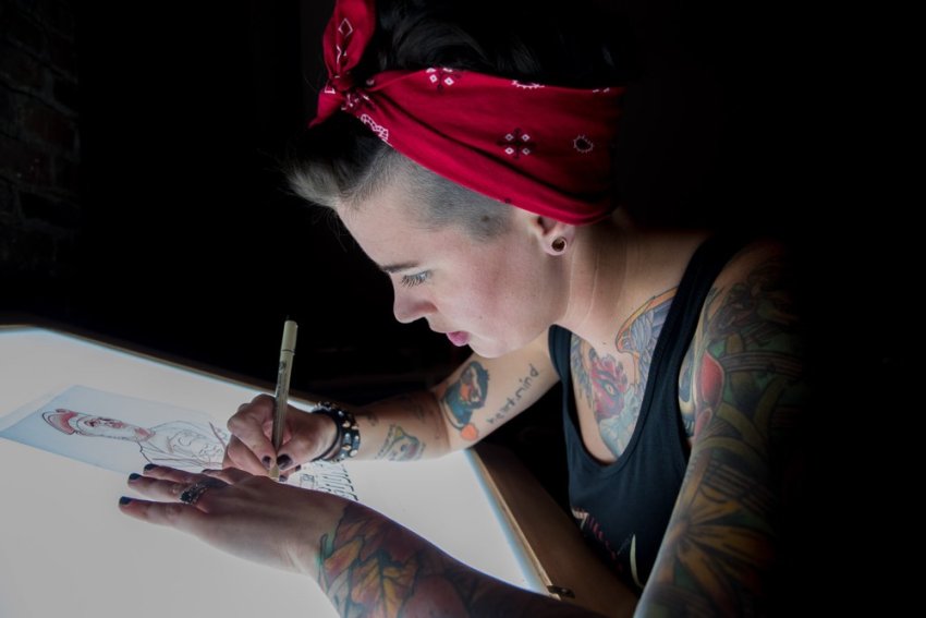 Amanda Householder preparing a drawing for a client at Hart & Huntington Tattoo Co. Nashville