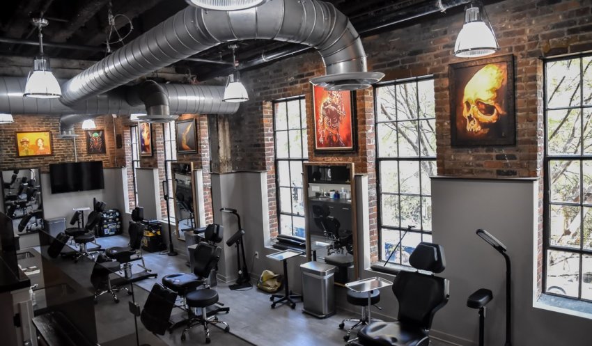 The waiting area at Hart & Huntington Tattoo Co. Nashville
