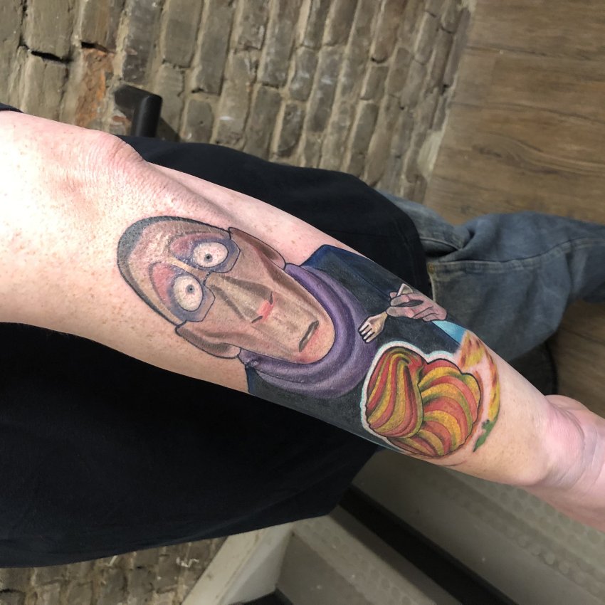 Once pandemic’s over, we’ll keep going and finish it up as a full sleeve. We’re talking about adding Linguine and some of the other characters. Really as many as we can. Whatever Dustin wants to do, I’m good with. I’m like, “You don’t even have to show me, just go for it.”