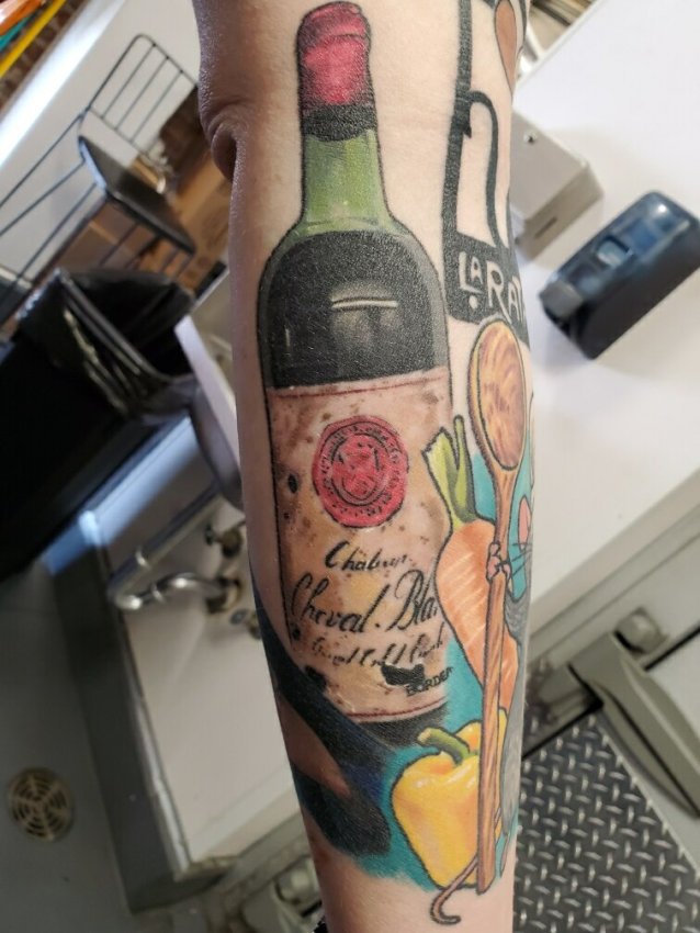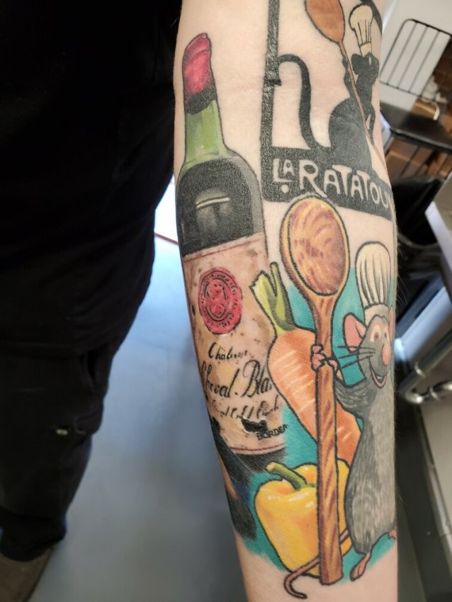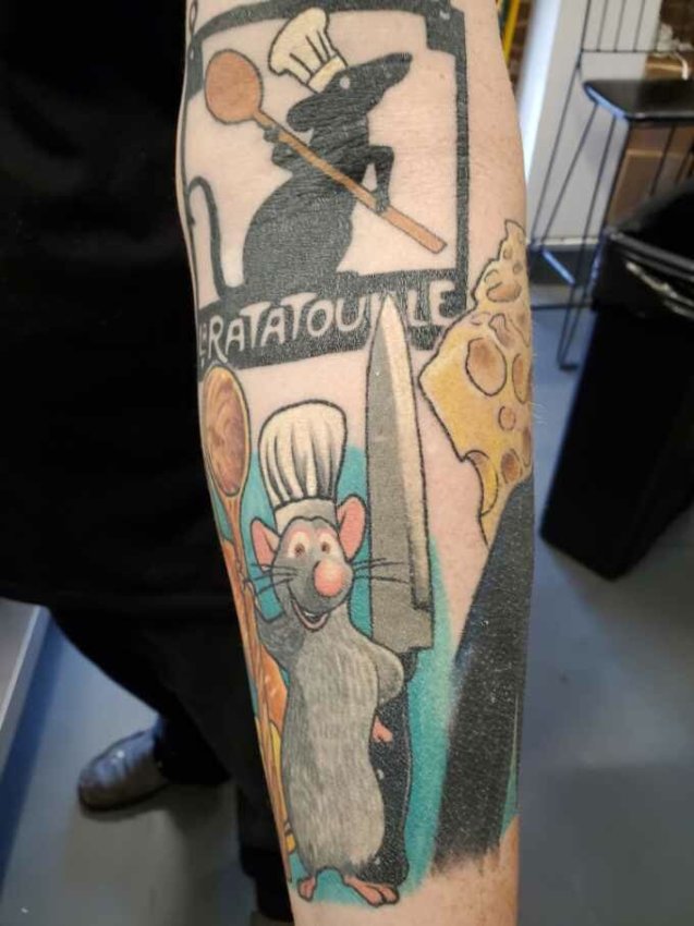 It was such a great experience that his one Ratatouille tattoo has turned into a half-sleeve featuring other characters from the movie.