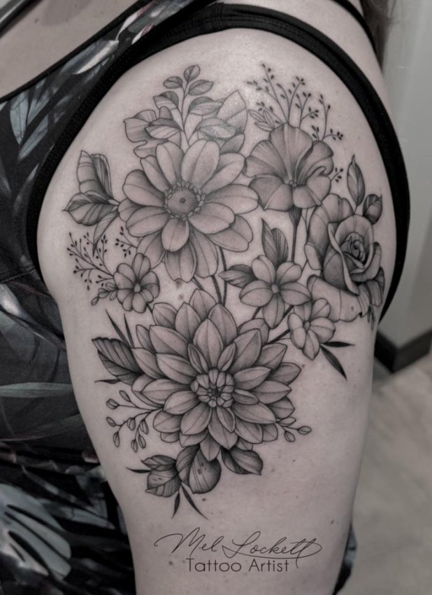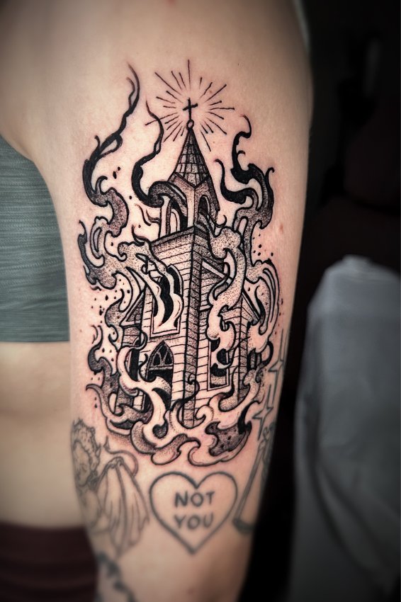 Illustrative tattoos borrow their form from realism and traditionalism and utilize various techniques such as linework, dotwork, blackwork, and more. They are easily recognizable because they look like illustrations in a storybook, art gallery, or on paper. Illustrative tattoos are animated and use age-old techniques to bring the subject to life.