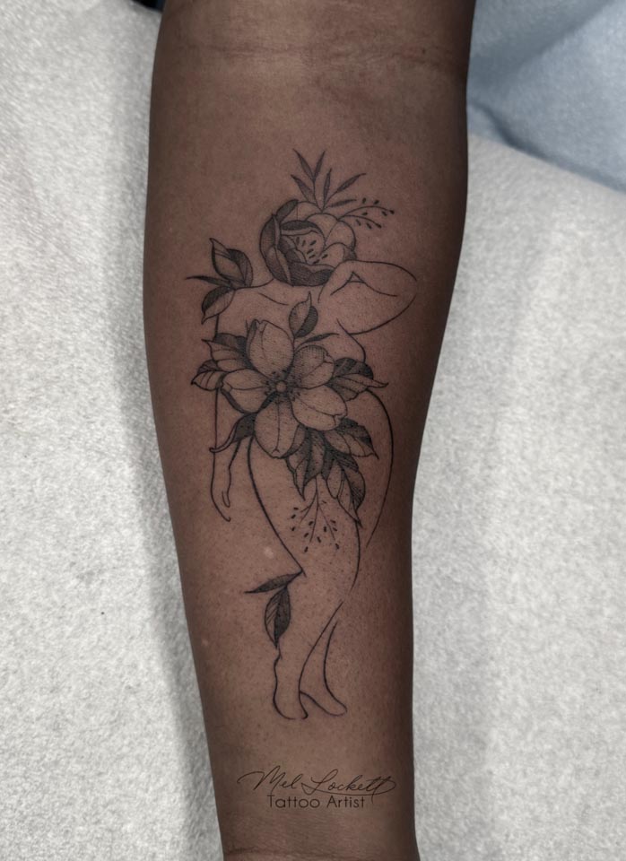 Black and Gray, Flower, Illustrative, Fine Line tattoo