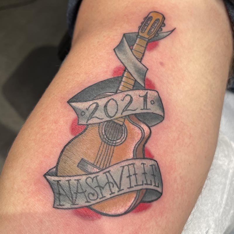 Pay tribute to the place where country stars are born and music legends are made with a custom Nashville tattoo.